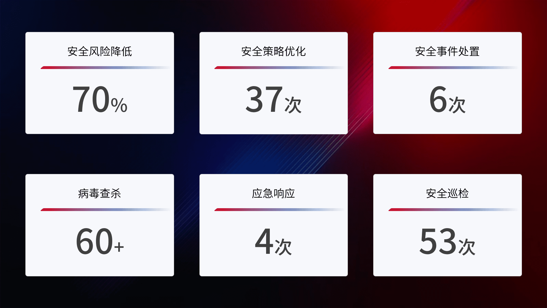 提供全面的安全事件报告体系,,,,包括处置报告、、、周报、、季度和年度总结,,结合持续监控,,,帮助客户深入了解网络安全状况。。。